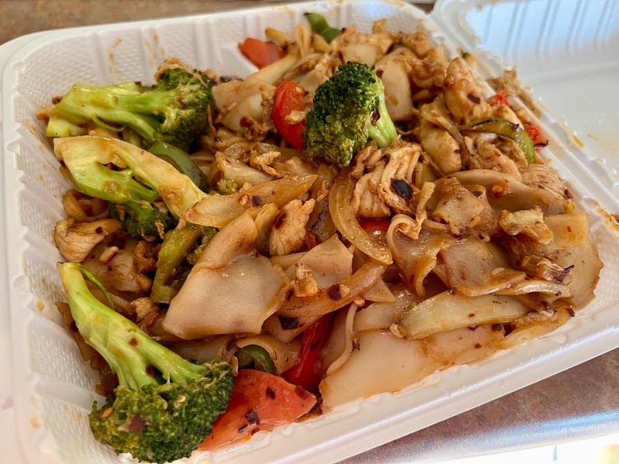 Stir- fried wide rice with broccoli, egg, and thick soy sauce. This includes your choice of meat including beef, chicken, shrimp, vegetable and tofu.